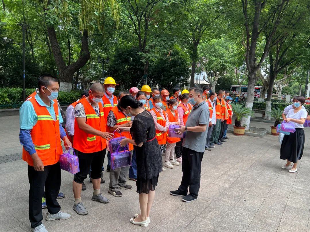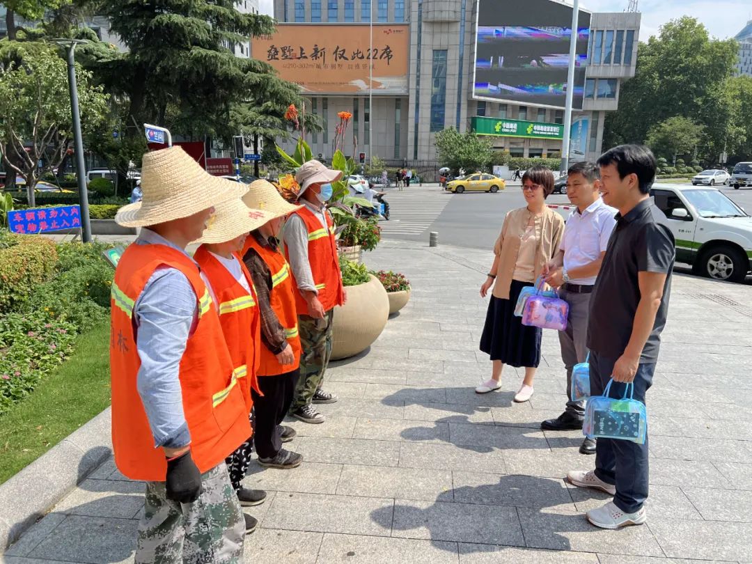 今年夏天,南京市氣象局接連發(fā)布高溫預(yù)警,為切實(shí)保障一線職工安全健康,確??崾钐鞖庀赂黜?xiàng)工作安全開展,7月18日上午,區(qū)總工會(huì)、集團(tuán)黨支部、工會(huì)領(lǐng)導(dǎo)在浮橋南廣場慰問了高溫下堅(jiān)守在一線的園林班組,對(duì)他們頂烈日、戰(zhàn)高溫的吃苦耐勞精神表示關(guān)心和感謝。