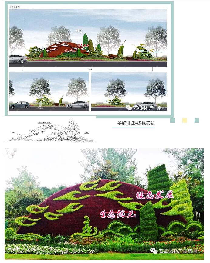 整體綠雕設(shè)計(jì)具有濃郁的水鄉(xiāng)文化特色,初升的旭日給洪澤帶來了晨曦,翱翔的鷺鳥展現(xiàn)著城市的魅力,在四方友人的美好希冀下,洪澤將更蓬勃發(fā)展、生機(jī)盎然。